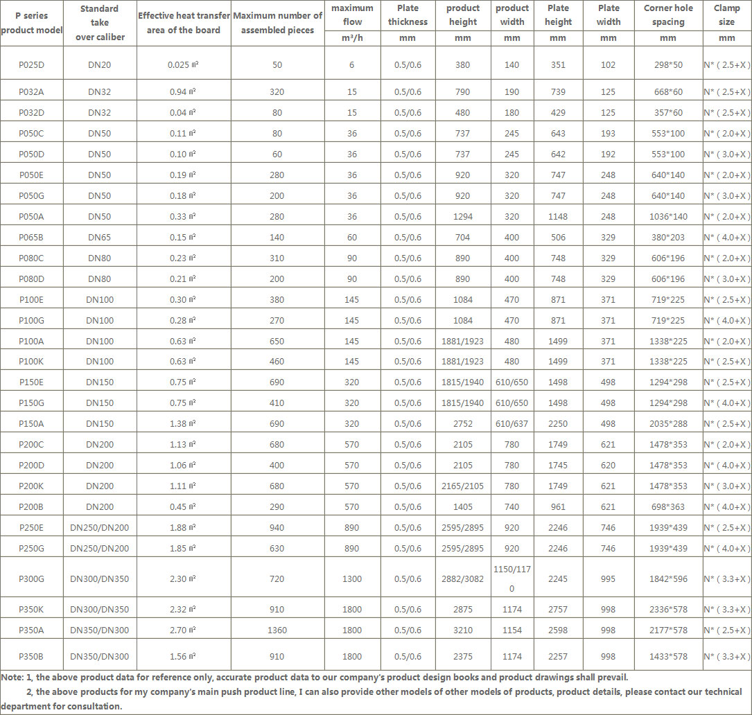 P series of removable plate heat exchanger product specifications data sheet